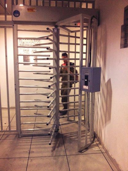 Molinete para entrar al baño en la terminal de buses de Jerusalén. Foto: Tali Feld Gleiser.