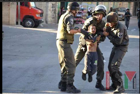 Siete años tiene el niño palestino que hace unos días fue detenido durante 40 minutos en Hebrón por tres policías de fronteras israelíes por lanzarles piedras antes de ir a la escuela. El vídeo muestra al pequeño siendo arrastrado por los soldados, llorando, pataleando. El niño lleva una cartera de Spider-Man, a los niños palestinos también les gusta Spider-Man. Los policías de fronteras llevan casco, y chaleco, y aunque no se ve en la imagen supongo que irán armados, todos los israelíes, militares o civiles, policías de fronteras o colonos, van armados o tienen un arma cerca.