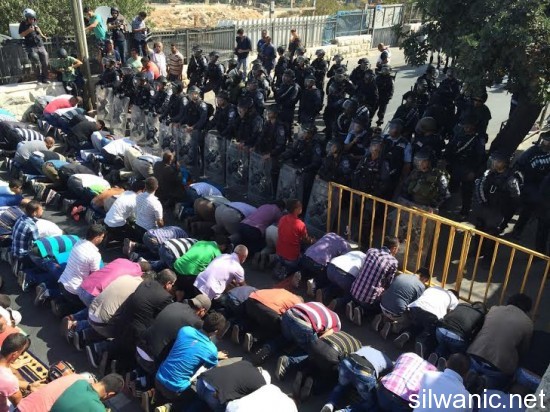 Palestinos impedidos de ingresar a Al Aqsa rezan en la calle (Foto: Siwanic)