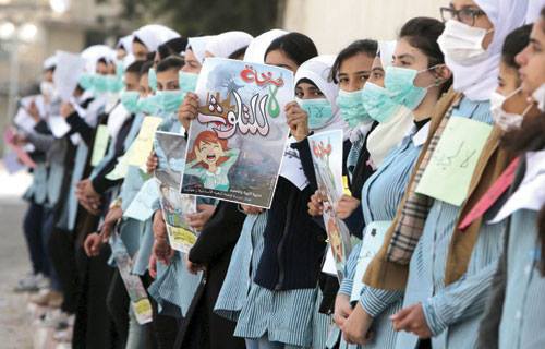 Publicado el 06/02/2015 en 500 × 320 en Niñas palestinas protestan por contaminación de industria «israelí» en Cisjordania