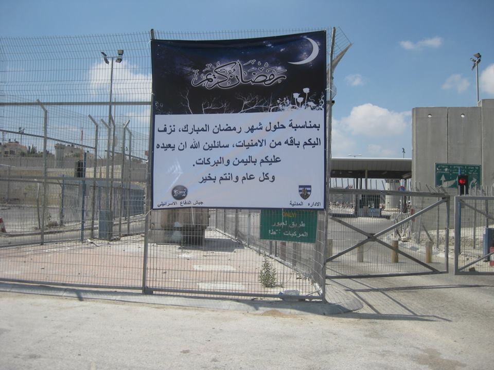 Saludo de Ramadán colocado por el ejército israelí en el checkpoint de Qalandiya.