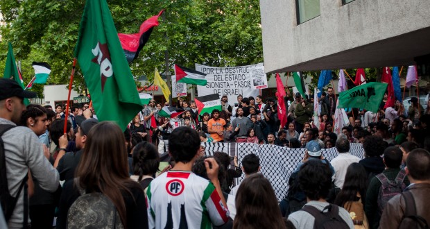 Este viernes 23 de octubre, alrededor de las 18:30 horas, un gran grupo de personas se congregó en las afueras de la Embajada de Israel en Chile en apoyo a la causa palestina, y en particular en apoyo a la Tercera Intifada (levantamiento popular) que se está desarrollando en aquellas tierras, y en repudio a la serie de acciones represivas que está llevando a cabo el Estado de Israel, que ya ha asesinado a 52 palestinos en lo que va en este mes de octubre.