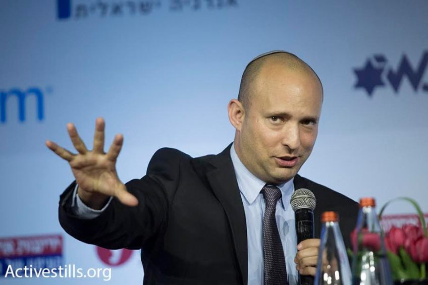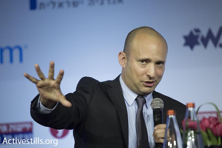El ministro de Educación Naftali Bennett hablando en la conferencia Stop BDS. Jerusalén, 28/3/16.  (Oren Ziv/Activestills.org)