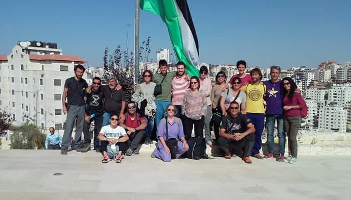 La brigada en el memorial del poeta nacional palestino Mahmud Darwish, en Ramala.