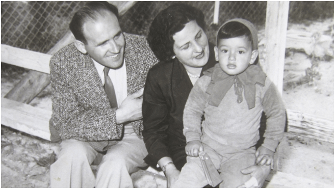 Grünbaum fotografiado a finales de 1950 con sus padres adoptivos [Cortesía de Gil Grunbaum]