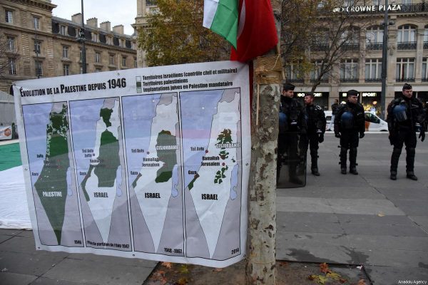 Manifestantes participan en un acto de rechazo contra el presidente de Estados Unidos Donald Trump y el primer ministro israelí Benjamin Netanyahu durante una protesta en la Plaza de la República en París, Francia, el 9 de diciembre de 2017 [Nedim / Agencia Anadolu]