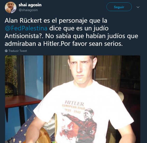 Publicado el 03/05/2018 en 609 × 593 en Chile: Respuesta de Alan Rückert por tuit de sionista que lo acusa de nazi