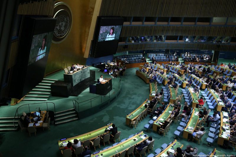 La embajadora estadounidense ante la ONU, Nikki Haley, habla durante la sesión convocada para tratar las acciones de Israel en Gaza, en Nueva York, el pasado 13 de junio de 2018. [Mohammed Elsham/Anadolu Agency]