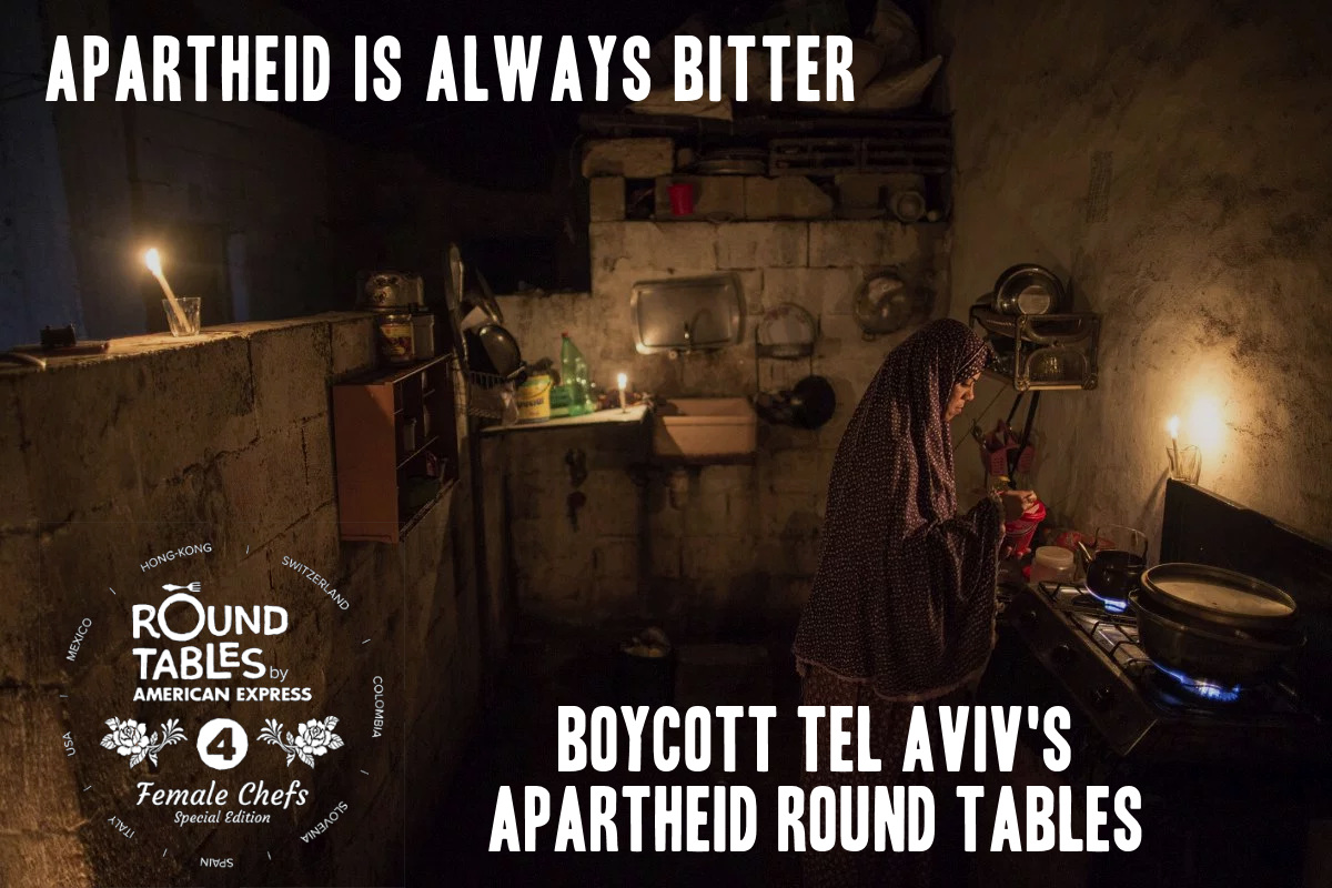 Publicado el 27/09/2018 en 1200 × 800 en ¡El apartheid siempre es  amargo! Llamamiento palestino a los chefs para retirarse de las “Round Tables” en Tel Aviv.