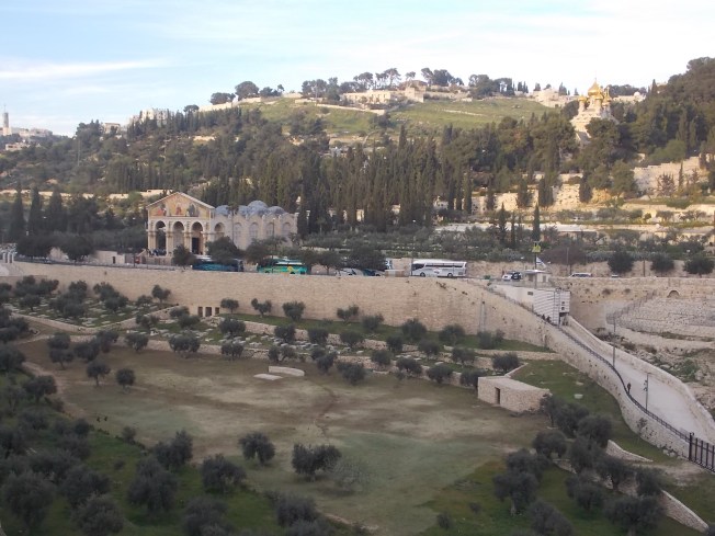 Vista del Monte de los Olivos desde la Ciudad Vieja de Jerusalén (iglesias de Santa María Magdalena y de Todas las Naciones. Abril 2015. (Foto: María Landi).