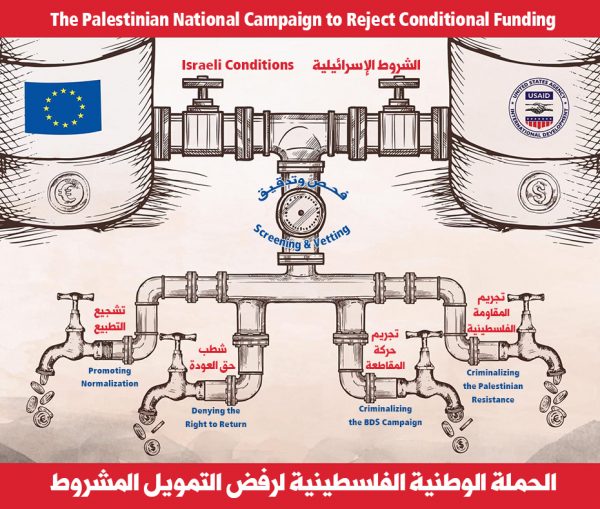 A medida que las restricciones de la UE sobre las organizaciones palestinas aumentaban hasta el punto de interferir con la política palestina, la recién lanzada Campaña Nacional Palestina para Rechazar la Financiación Condicionada ha pedido a las organizaciones palestinas e internacionales que adopten una postura clara contra las pretendidas “cláusulas antiterroristas” de la UE.