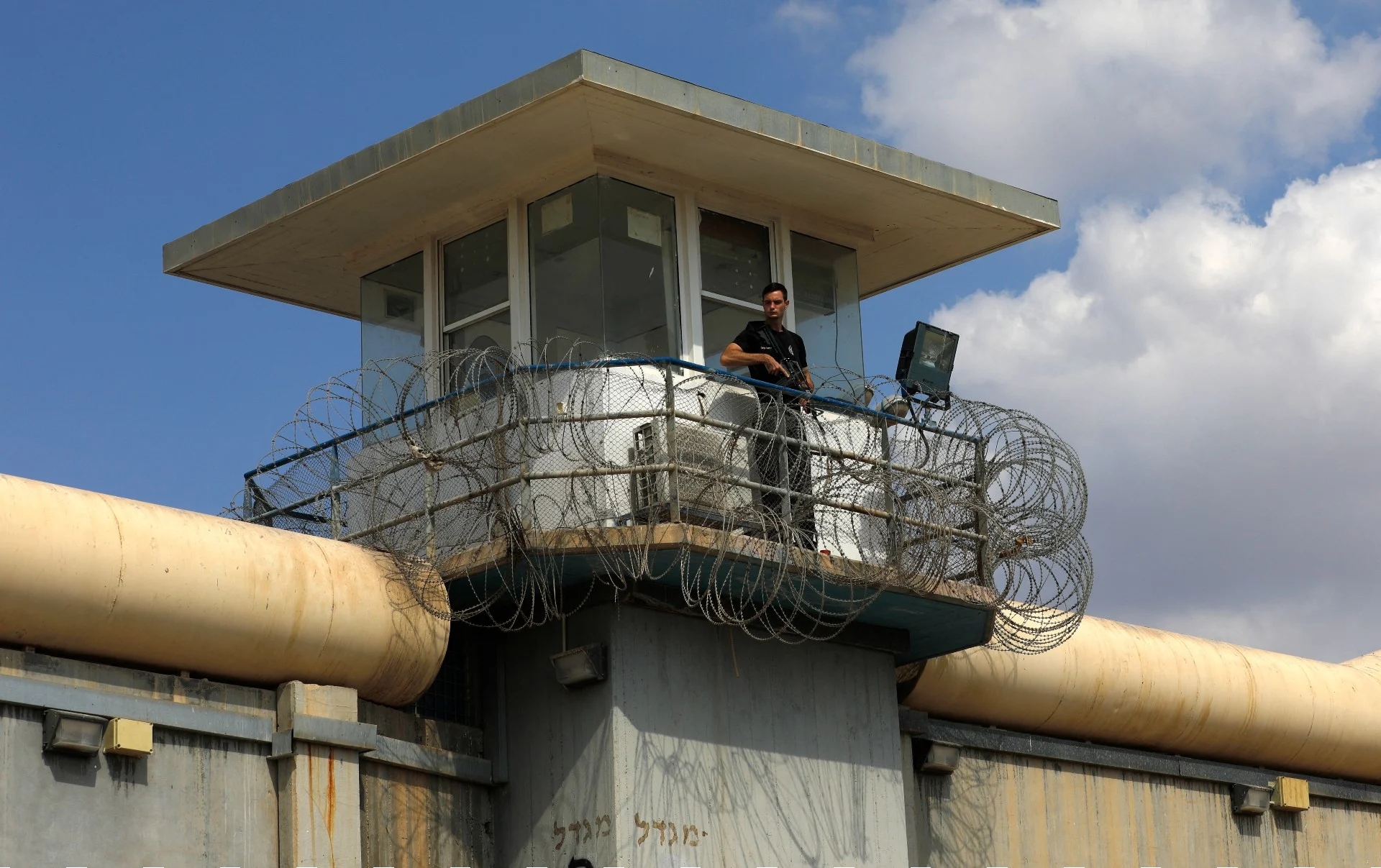 Guardia israelí en una torre de vigilancia en la prisión de Gilboa (AFP).