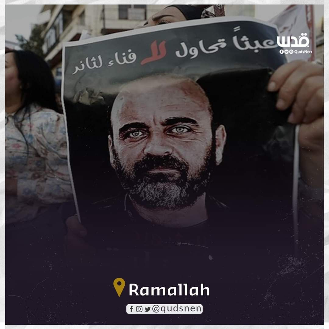 Manifestación en Ramala por el asesinato de Nizar Banat a manos de la Autoridad Palestina.