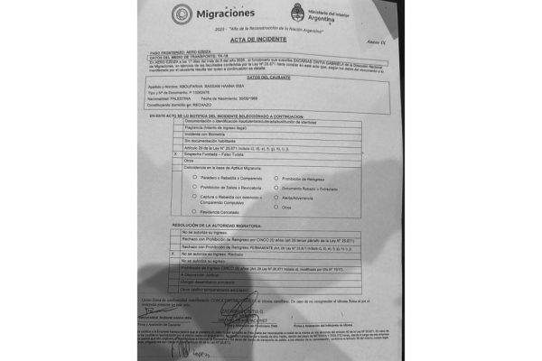 Publicado el 01/07/2025 en 600 × 400 en Gobierno de Milei deportó forzosamente a una familia palestina, que denunció maltratos y abusos en el aeropuerto