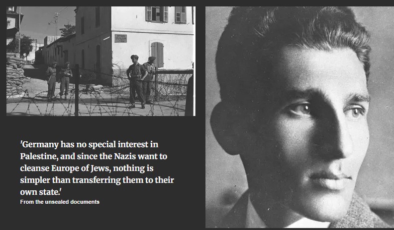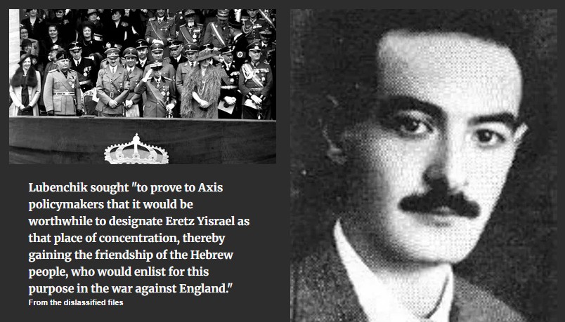 El expediente también menciona a Naftali Lubenchik, un miembro del Lehi que fue enviado a reunirse con representantes alemanes. Un documento redactado en 1951 afirma que él creía que «el Eje no busca la destrucción física del pueblo judío, sino más bien su expulsión de Europa y su concentración en un solo lugar…».